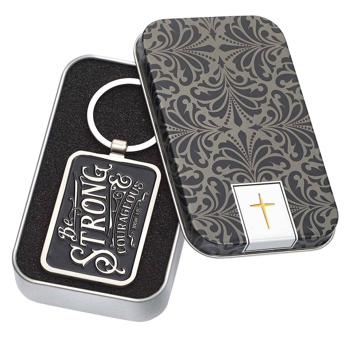 Keychain in Tin Be Strong & Courageous Josh. 1:9