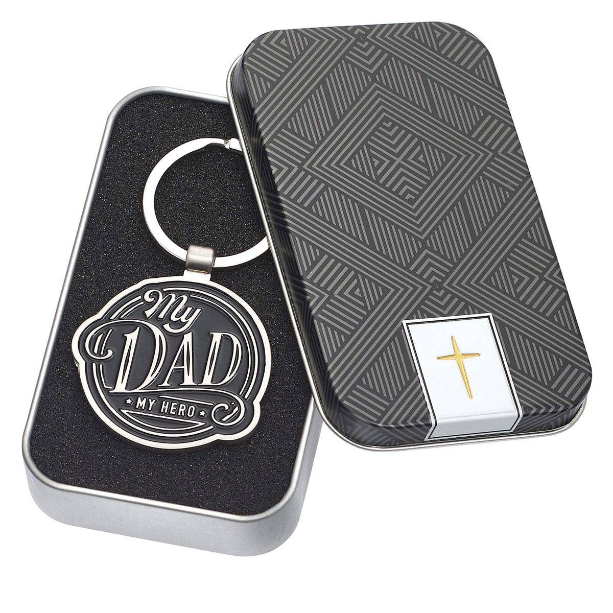 The My Dad, My Hero Key Ring in Tin is an excellent way to honor your Dad on any occasion. Let him know how much you appreciate the faith he models for his family.