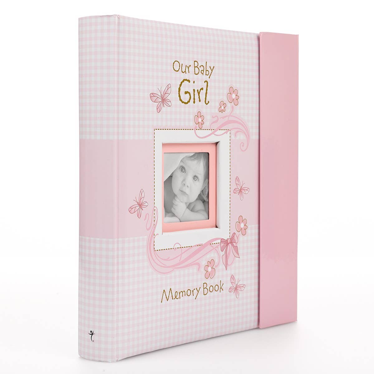 This sweet pink gingham baby book for girls is 64 pages of keepsake records of a baby's birth and first year. There are prompted pages to fill in, scrapbooking pages for photos and more, small envelopes for the hospital bracelet and a lock of hair from the first haircut, and 2 full pockets for assorted keepsakes. The pages carry quotes, poems, prayers and verse from Scripture - all conveying the beauty and design of bringing forth this new life.