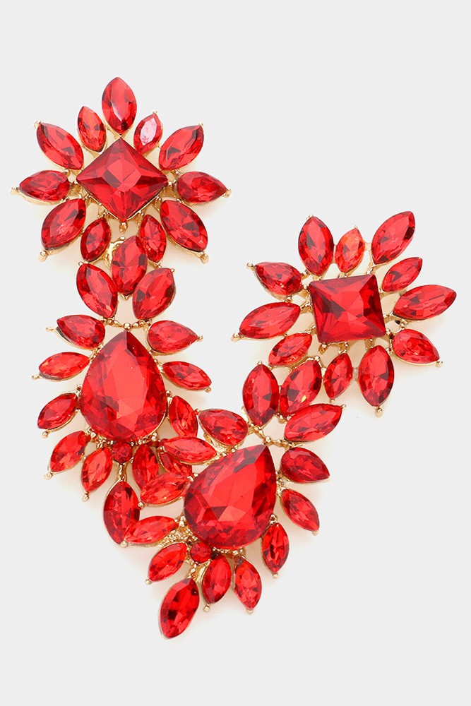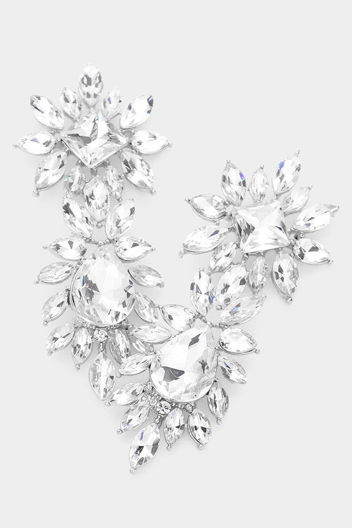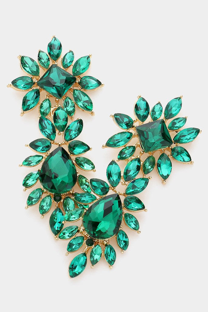 Size : 1" X 2.6" Post Back Lead and Nickel Compliant Square Teardrop Accented Marquise Stone Cluster Evening Earrings