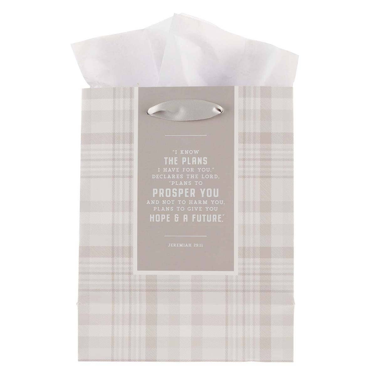 Gift Bag MD Gray/White I Know the Plans Jer. 29:11