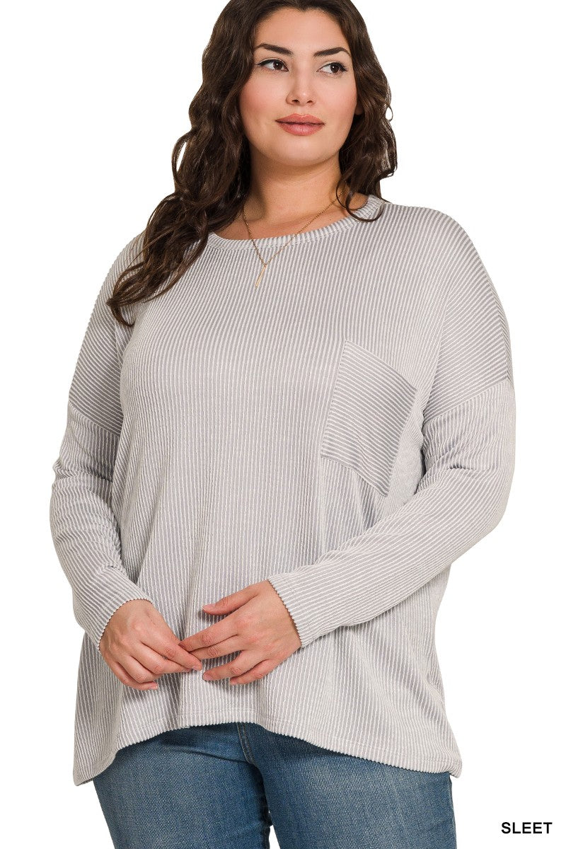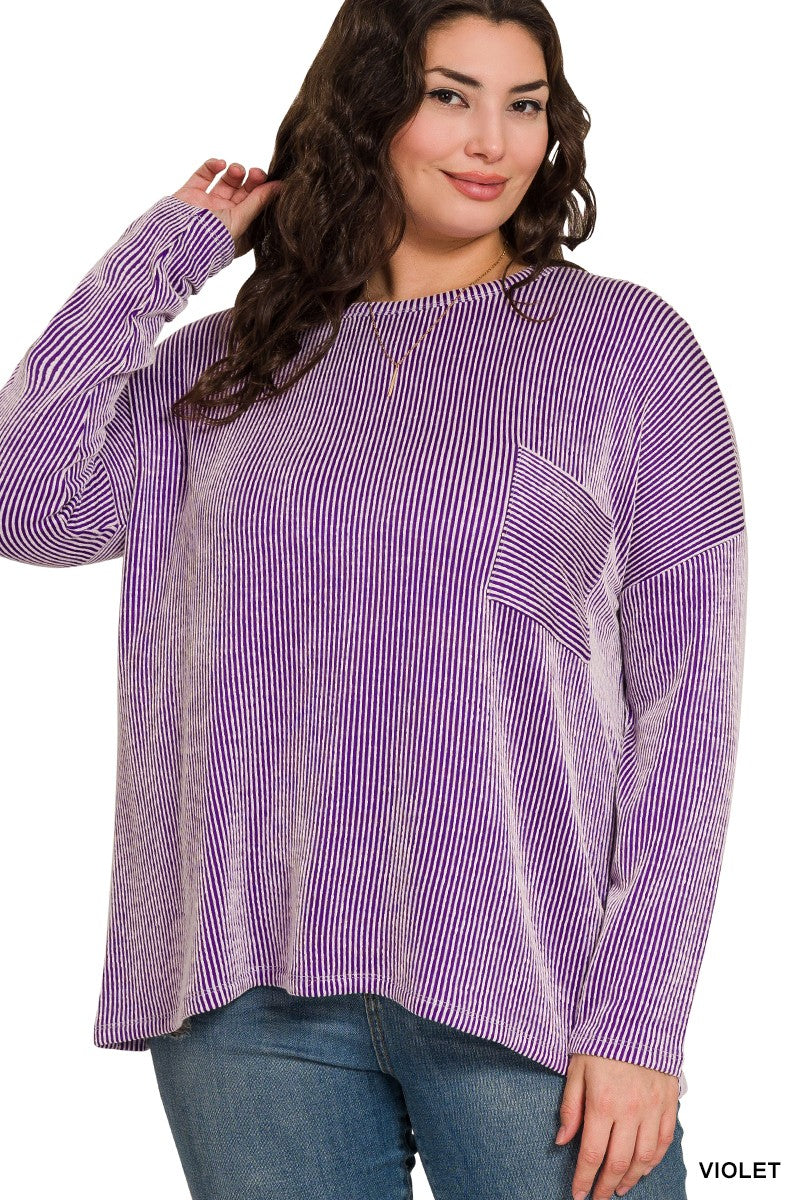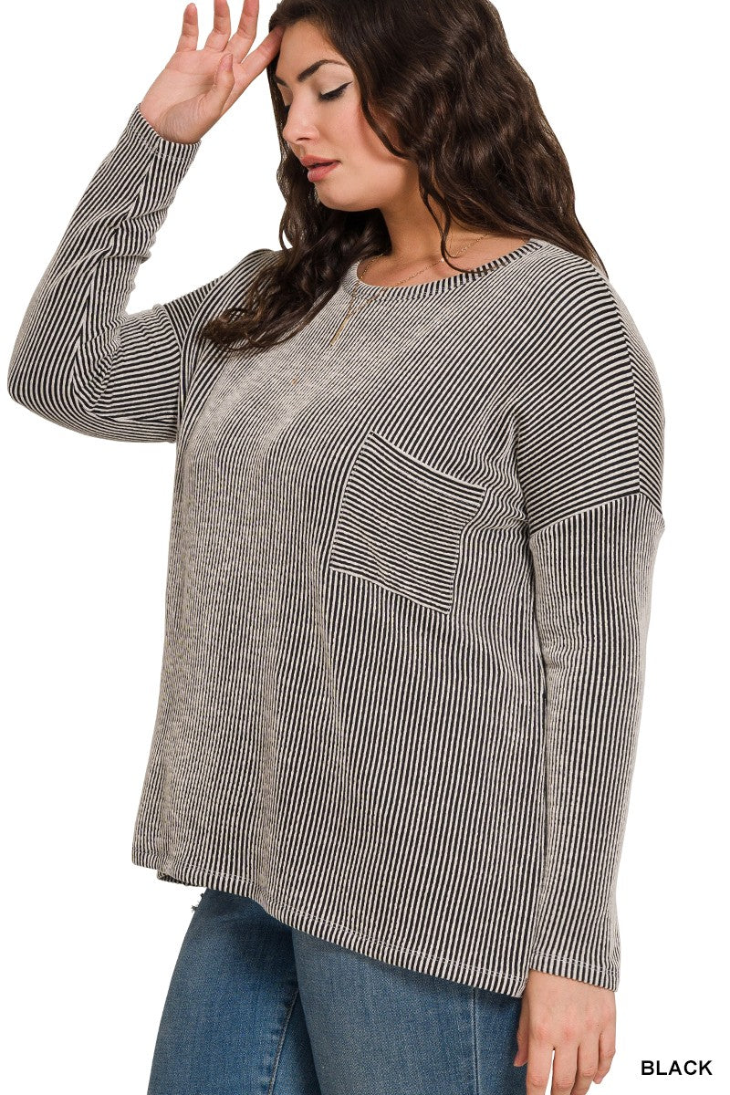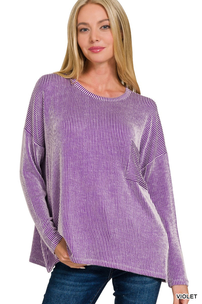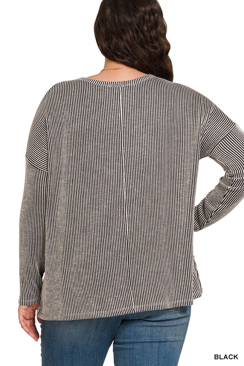 RIBBED STRIPED OVERSIZED LONG-SLEEVE TOP