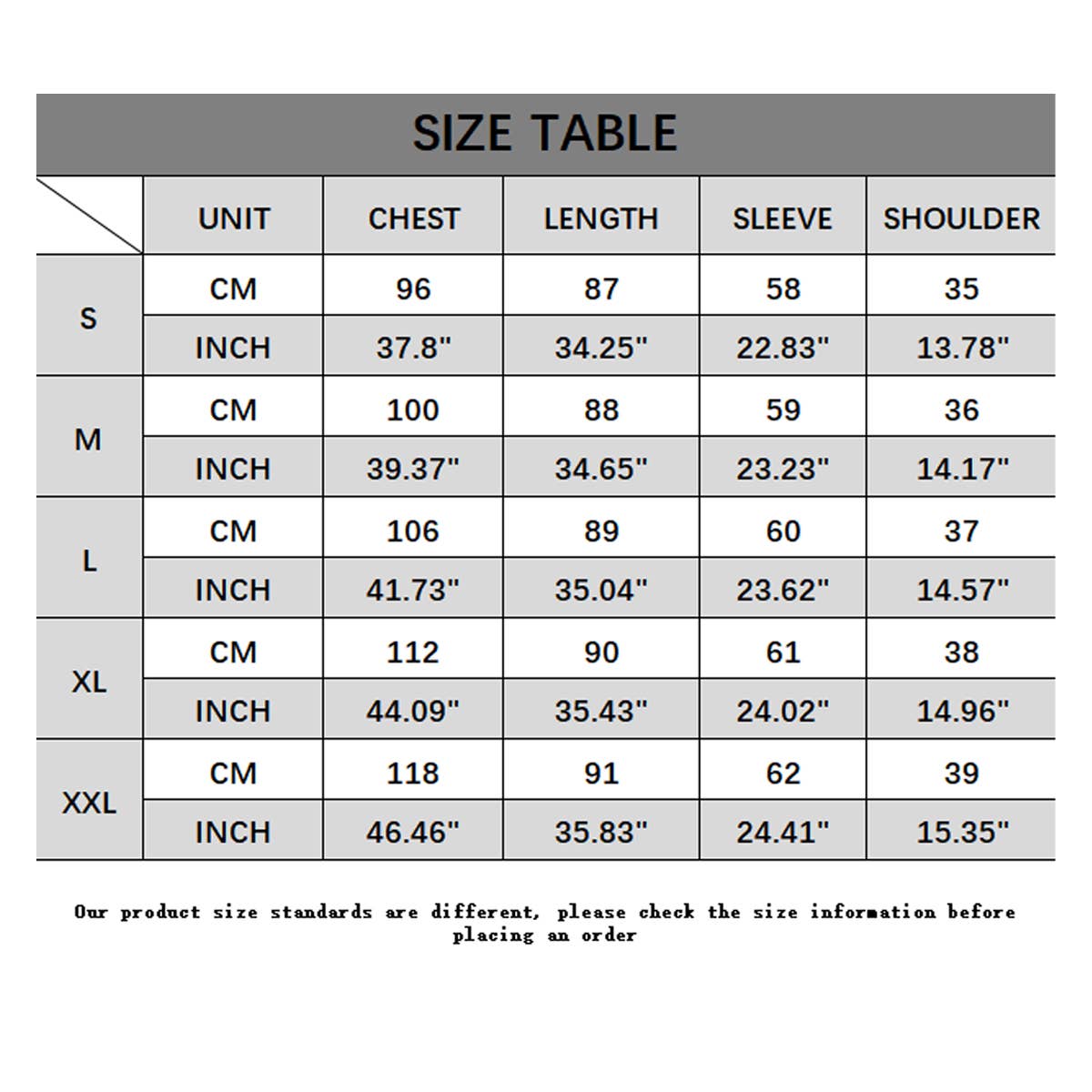 100% POLYESTER SIZES