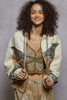 Designed in long sleeve roomy fit hooded jacket in quilted knit with varied terry and printed terry accents and accented drawstring.